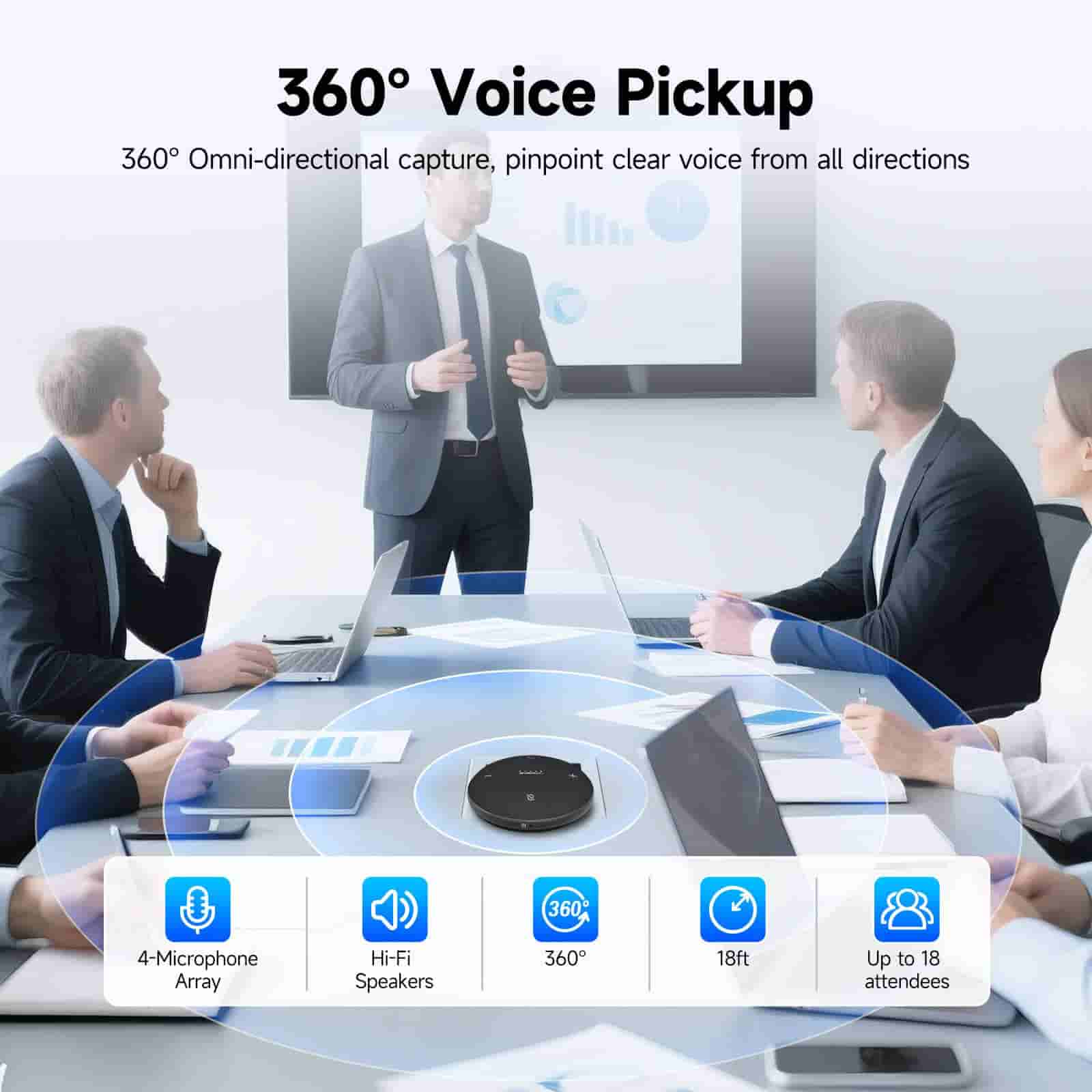 - Capture sonore à 360° pour une prise de voix précise de tous les interlocuteurs